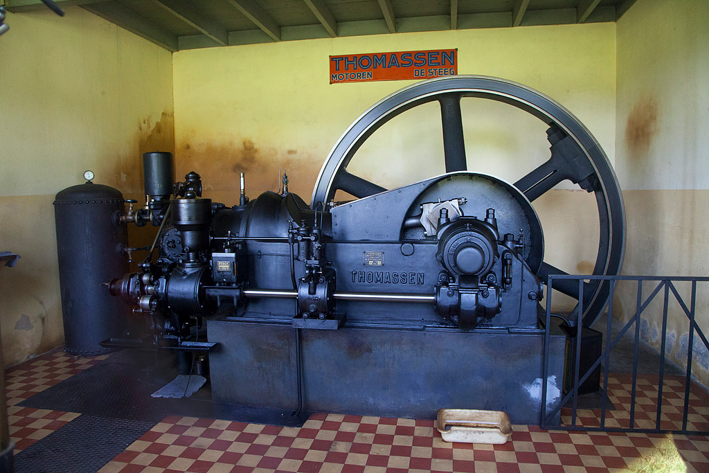 De maalderij wordt aangedreven door een 1-cilinder dieselmotor Type H20 van de fabrikant Thomassen.